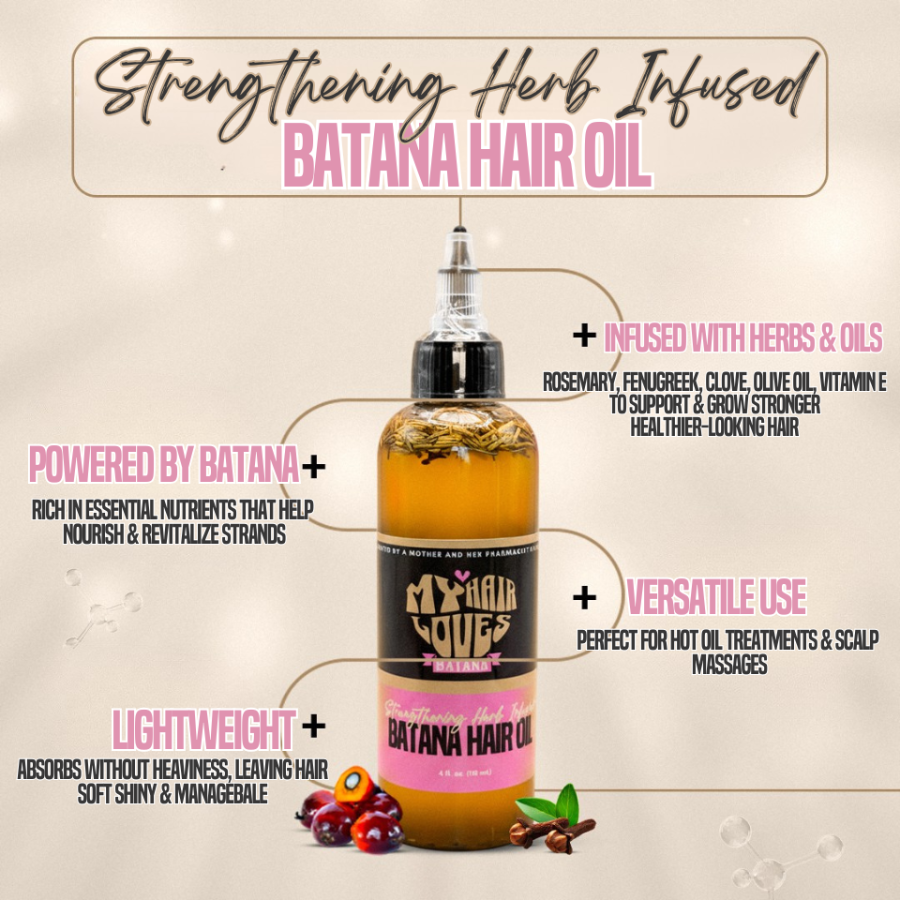 A nourishing infusion of Batana and restorative herbs designed to strengthen, protect, and reveal the natural beauty of your hair.